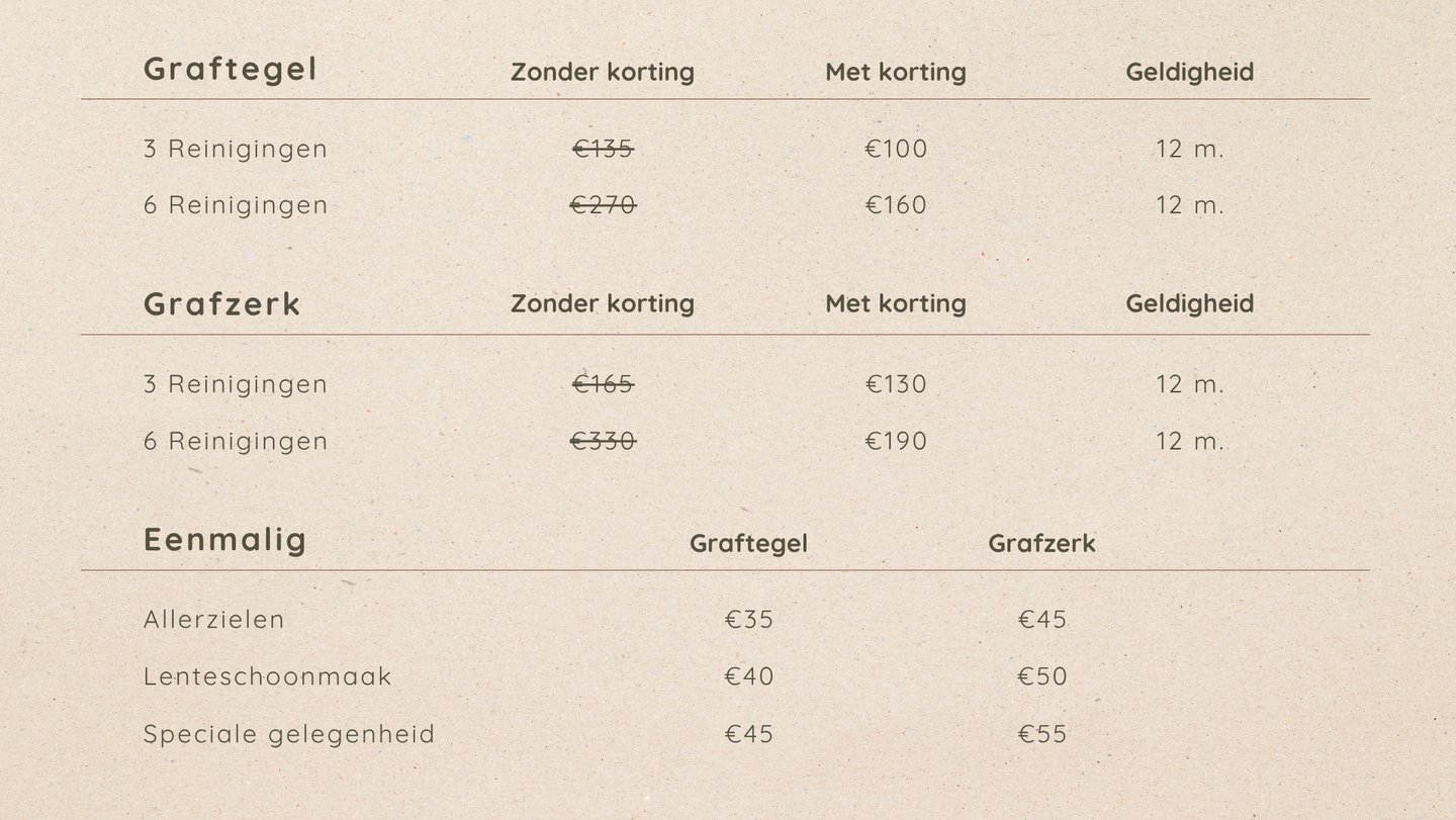 Onderhoudsformules om het graf van jouw dierbaren met zorg en respect doorheen het jaar te onderhouden.