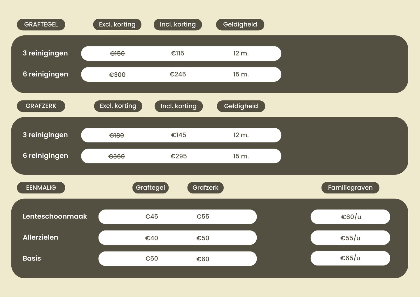 Onderhoudsformules om het graf van jouw dierbaren met zorg en respect doorheen het jaar te onderhouden.