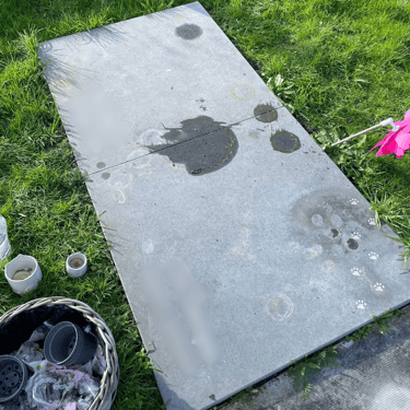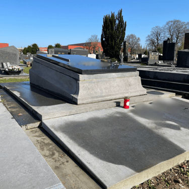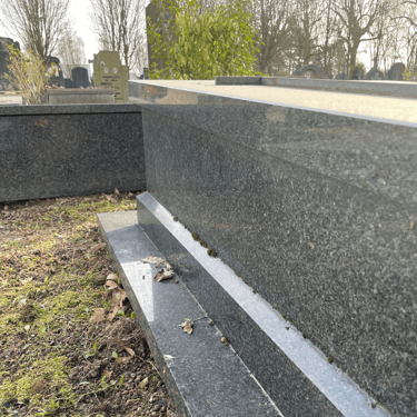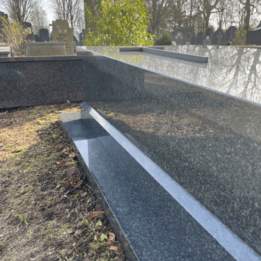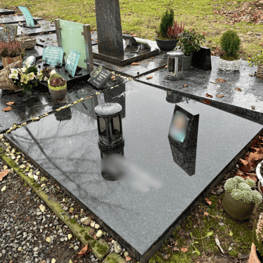 Ik ben zeer tevreden met de resultaten. De grafsteen ziet er weer als nieuw uit, bedankt!